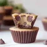 These ingredients create that classic cookie dough flavor—sweet, rich, and dotted with mini chocolate chips—nestled inside silky chocolate cups.
